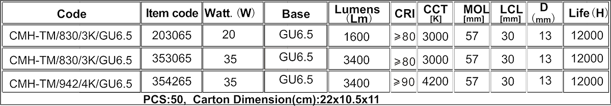 POSITION:HOME > PRODUCT > HID LAMPS > Ceramic Metal Halide Lamps