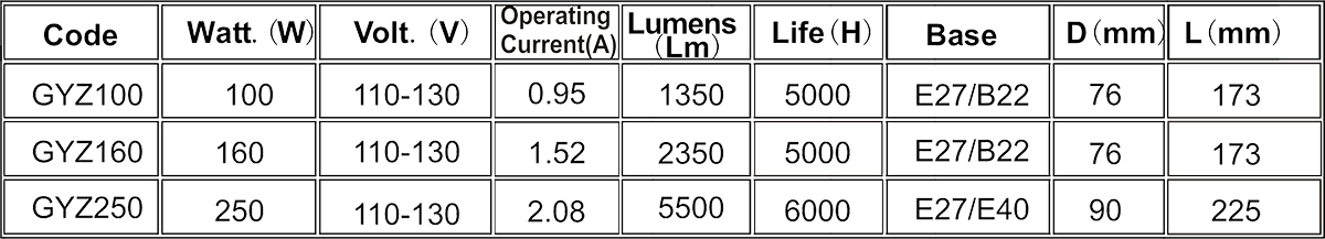 POSITION:HOME > PRODUCT > HID LAMPS > Mercury Lamps
