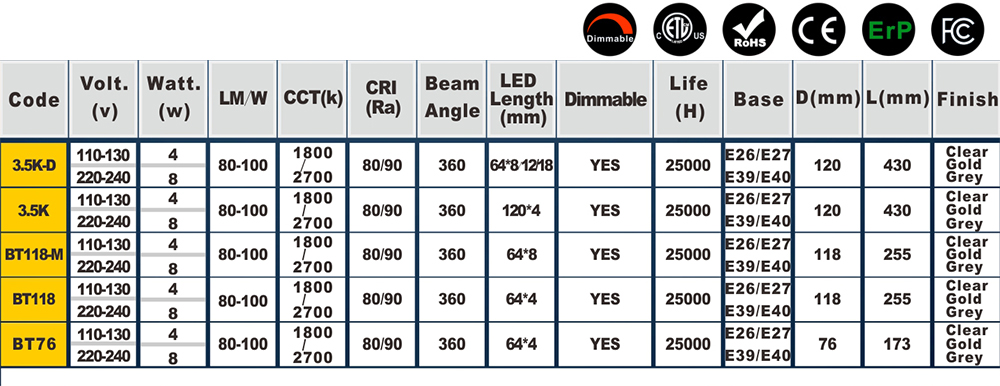 POSITION:HOME > PRODUCT > LED LAMPS > LED FILAMENT LAMP OF BIG SIZE