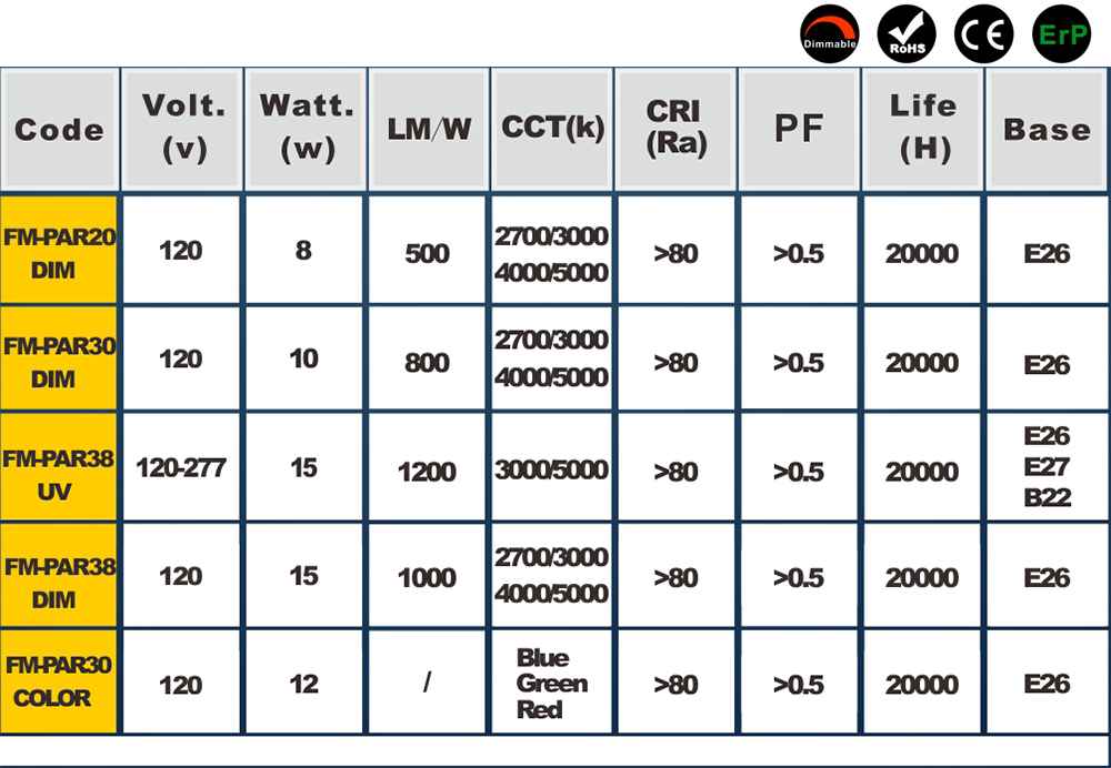 FM-PAR20DIM/FM-PAR30DIM/FM-PAR38UV/FM-PAR38DIM/FM-PAR30COLOR