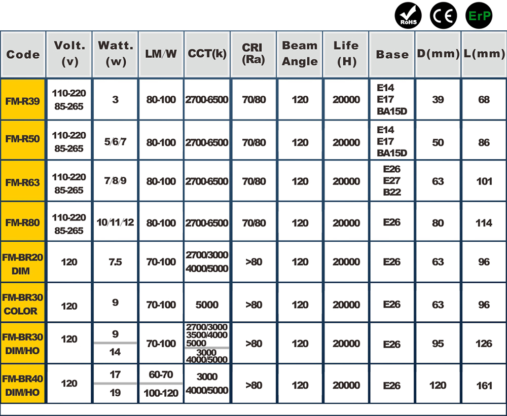 FM-R39/FM-R50/FM-R63/FM-R80/FM-BR20DIM/FM-BR30COLOR/FM-BR30DIM HO/FM-BR40DIM HO